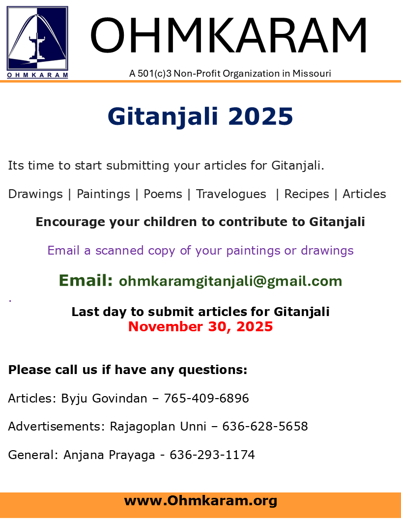 For more information contact President Anjana Prayaga 636-293-1174 or email us at info@ohmkaram.org